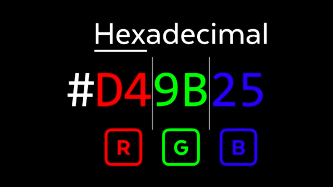 Hexadecimal Notation: Colors are often represented in hexadecimal notation (#RRGGBB), where RR, GG, and BB are two-digit hexadecimal values for red, green, and blue components, respectively. Example: #FF0000 for red, #00FF00 for green, #0000FF for blue.